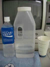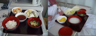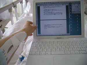 晴子の闘病記 その2 ![]() 4月11日(水)「苦しみ!腸が破れませんように!」 一日目の終わり頃から苦しみは始まりました。 翌日の午後に内視鏡を入れて検査をする為に腸の中を 空っぽにしなくてはなりません。 浣腸、下剤、苦い漢方など続きました。 「大木さん、明日の朝6時頃から2リットルの塩水を飲んでもらいますが、 詰まっていると腸が破れる危険があります。 飲んでお腹が張ってきたら直ぐに飲むのを止めて連絡をしてください。」 と先生に言われた言葉が頭の中に大きく書き込まれて只ひたすら開通して「腸が破れませんように!」 何時もボルガで腸みたいな焼き鳥を食べていたから大丈夫!! なんて思ったりして気を紛らわして飲みました、飲みました。 さすがに、2リットルは飲めず残りはポカリスエットでも良いと 言われて残りの500CCを飲み身体の中がすっきりしました。 午後の検査では、腸の中を散歩しました。 テレビ画面で小腸大腸を見て回り、ここが虫垂炎をとった後だよとかいろいろな入り口などの説明を「痛い!」と何度か声をあげる度に痛み止めが点滴から注入されてそれが直ぐに効くのでかなり強い薬であることがわかります。 5滴が目一杯使える量のようでした。 最後の部分に到達するまでに5滴しっかりと使い帰り道ゆっくりと見直しながら撮影をしていました。 入り口から25センチぐらいのS字結腸に潰瘍が見られました。 5カ所のうち3カ所の組織を取って検査にまわされました。 ![]() 車椅子に乗って部屋へ戻りました。 向側のベッドにいる高齢のご婦人は、車椅子でしか移動が出来ません。痛い!痛い!と言いながら頑張って車椅子に乗りトイレへ通っています。 4人部屋の他の二人の方は、私と同じ日に入院しました。 ![]() お一人は、今日退院されました。買われたテレビカードを“使わないから”と言われて頂いてしまいました。 もうお一方は、私と同じ腸が悪いようで出された食事の写真など撮らせていただき自分もこれからこんな段階をふんでいくのだと思いました。 ![]() 面会時間になると連れ合いが来て昨日先生と話した内容を聞きました。 「暫く、のんびり身体を療養して、こちらもその体制でいるから心配しないで」・・・・・と。 「ゆきが不思議な様子でジローは寂しそうにしているよ」 牛肉のしゃぶしゃぶをあげたら喜んで食べていたそうです。 「母さんの有り難み!」わかるかなぁ?。 日記が書けるようにパソコンや携帯の充電器など明日届けてくれると言って帰った連れ合いに感謝!! 8日の夜から固形物は口に入れていません。 点滴は、ずっと続いています。 時々、量の少ない抗生剤を同時に点滴しながら片方が終わり抜き忘れて逆流してしまったりして慌てて「看護婦さん」と呼ぶハプニングなども起こり日常では考えられない体験をしながら入院生活二日目が終わりました。(おおき せいこ) |