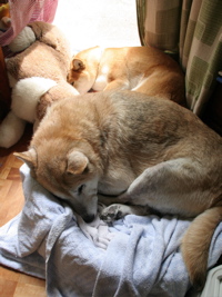 晴子の入院日記 6から11まで! (退院しました!!) ![]() 4月15日(日)「ジローお兄ちゃん!優しいね!!」 6時検温、血圧そしていろいろ質問! 点滴は、午後から・・・・・。 今日9時には、迎えが来て3時間の外出・・・・帰宅です!! ちょっと歩いては、ふらふらしていましたがそれを言うと取り消しになっては 大変と今朝から米粒が目で確認できるご飯を美味しく頂き全てが 血になり肉となってほしいなぁ?とおもいました。 入院しているK病院の食事も花丸です。 食事もと書いたのは、看護も花丸!!先生はじめ看護士の皆さん感じが良いのです。 9時、連れ合いの車で家に向かいました。 3時間の帰宅です。 ゆきはどんな顔をするだろう。ジローは元気かなぁ?。 車を入れている間に、鍵を開けて入るとゆきが駆け寄って 私の腕を二本の手で押さえ泣きました。 しがみついたまま離さず何やら話しています。 ジローは、それを見ると後ずさりして自分のハウスへ行きました。 ゆきに譲っているとわかる態度に胸が熱くなりました。 ジローのハウス近くで二頭を抱いて「頑張ったね」と言いました。 この時もまだゆきの手は、私の腕を握っていました。 「さっきまでボクにまつわりついていたのに!」 と少し寂しそうな連れ合いの声が聞こえました。 ゆきは、 哀しい体験 をしているので状況の中でいま一番大切なものを 感じ取れるのではないでしょうか。 おっとりジローには、無いものです。 少しきついけど散歩に行く事にしました。 近くを一回り、短い時間でしたが白やピンクのハナミズキが満開! 春ですね、春ですね。 ゆっくりと熱いタオルでジローとゆきを拭きました。 気持ちが良くなったふたりは、窓際で並んでぐっすりとお昼寝です。 安心仕切ったその姿にシャッターを押しながら「もう少しだよ!」 と心の中でそっと話しました。 さぁ、パソコンの前に座りました。 メイルを見るのが怖い!1000近く入っていたメイルは、 病院にもって行くノートパソコンに入れ後で処理することにしました。 先ずは、ページの更新を!! ブログの方は、トップ画面に大切なお知らせが見られるように移動しました。 一番気になっていた17日の国会前集会を更新出来てほっとしました。 当日は、参加出来ませんが気持ちは繋がっていたいと思います。 いよいよ「晴子の闘病記」を掲載しました。 1から5まで掲載している間に、ムキンポさんが訪ねて下さったようです。 全部掲載して西口の様子を見にムキンポさんのページへ行くともう 「晴子の闘病記」が載っていたのでビックリしました。 すごい!ムキンポさん!! 連れ合いが留守で局留めになっていた郵便物を一緒に取りながら病院へ送ってもらいました。 約束の時間をかなりオーバーしたので昼の食事は「冷たいなぁ?」 と思っていたら優しい看護婦さんが「温めて来るわねぇ?」 と出来立てのようなお昼ご飯になりました・・・ねぇ!花○でしょう!! 食事が終わると直ぐに点滴が始まりました。 さぁ、メイルのチェックをしました。 返信したいメイルがたくさんありましたが、ごめんなさい! 身体と少し頭を使ったのでとても疲れた一日でした。 (おおき せいこ) |