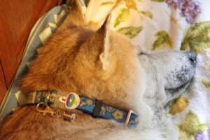 ジローとゆきの首輪 ![]() 私のアメリカ旅行中に柴犬ゆきは 庭や外へ飛び出し自由に遊ぶ楽しさを 覚えて脱走を繰り返し連れ合いを ヘトヘトにしました。 帰国した翌日も取材に出かけた連れ合いを 見送り軽く閉めかかったドアーからゆきは 飛び出し庭にいるタマちゃんたちを追いかけ 捕まえるのに数十分かかりました。 私もヘトヘトになりました。 ![]() そんなことがあって、ゆきに迷子になった時を 考えて普段も首輪を付けることにしました。 住所と名前を書いた紙を入れたペンダントと 可愛い骨がついた赤い首輪はとても似合いました。 「ゆき、似合うわ!」 そう言ってジローを見ると・・・・ それは寂しそうな顔で様子を見ていました。 「ジロー君も付けたいの!」 「わん!、わん!」と言う訳で 翌日、ジローの首輪を買いに行くことになりました。 朝の散歩でペットショップの名前を言うと 何時もは行くのを嫌がるジローがスタスタと お店の方へ歩き始めました。 開店前で首輪は買えずがっかりしたジローを見て 連れ合いが「ジロー、ピカピカもつけろ!」 ジローの顔つきがかわりました。 夜の散歩でピカピカ光る首輪をしている友達を見て ジローは何度も固まって見続けていたそうです。 ![]() ピカピカがついた首輪をしたジローはとても嬉しそうでした。 ゆきが来てジローは寝言を言う回数が減りました。 「ウッヒヒ、ウッヒヒ」と笑うような声で毎日言っていた 寝言を久しぶりに聞きました。 ピカピカ光るそして「お兄ちゃんだから特別ね」と マガジン9条 のシールも貼ってあげた首輪をして 幸せそうに眠るジローはどんな夢をみたのでしょう。 ![]() (06-09-24・おおきせいこ) |